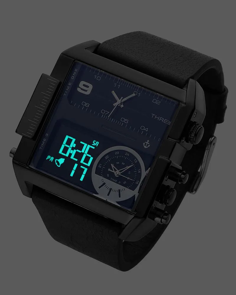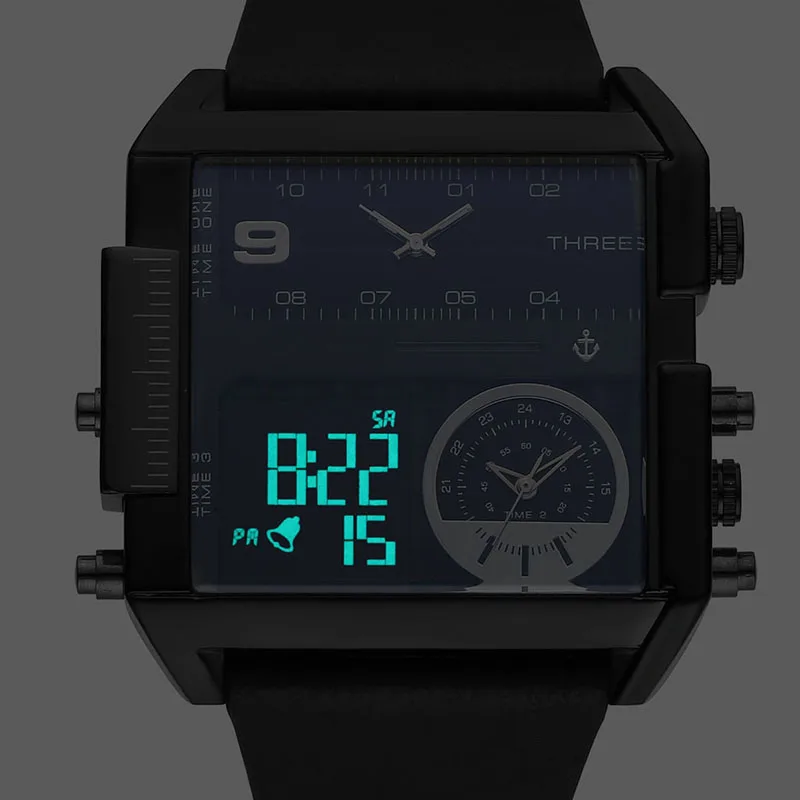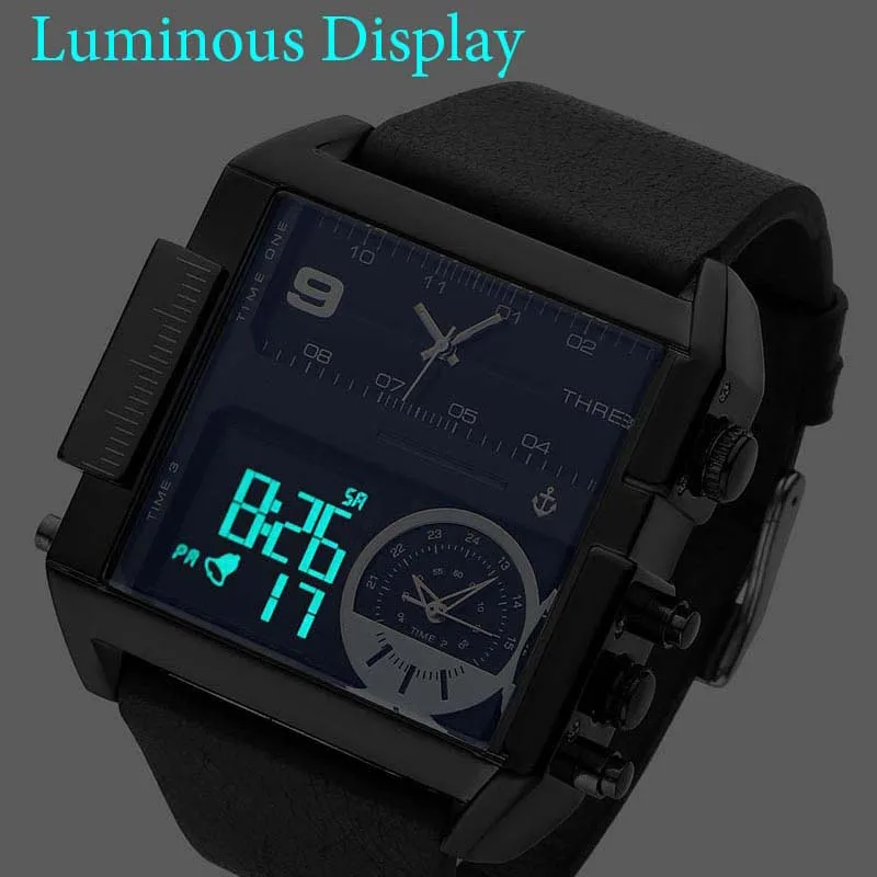 Feature:Alarm,Back Light,Water Resistant,Shock Resistant,Luminous,Multiple Time Zone,LED display