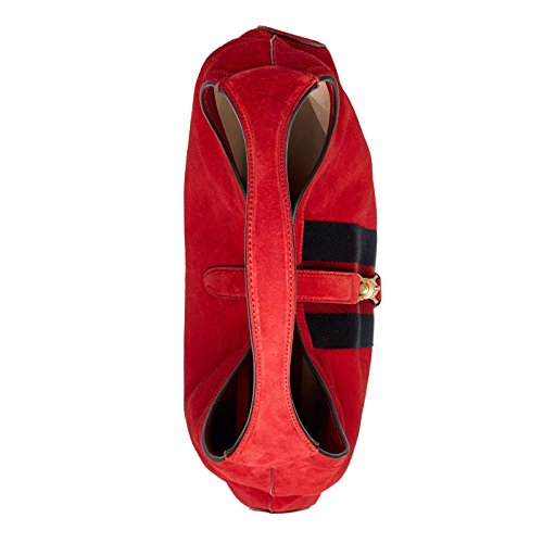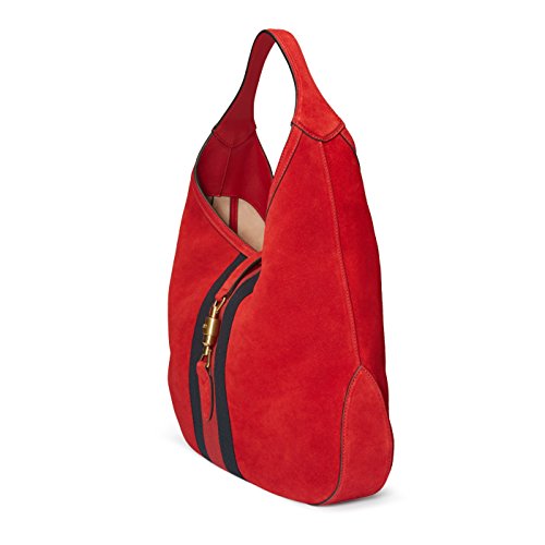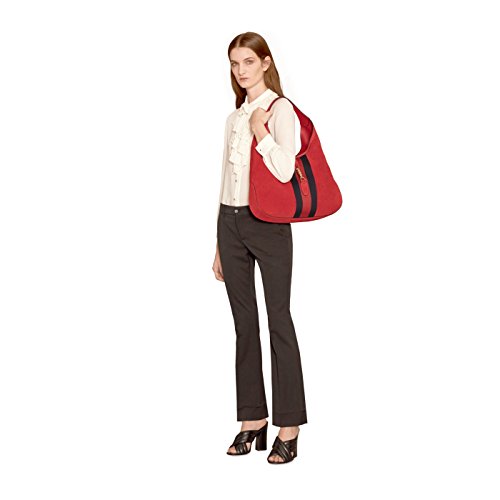 -. Brand : -. Color : Red -. Department : womens -. EAN : 0888108152964 -. Feature : made in Italy / Hibiscus red / Light pink suede lining / Blue/red/blue signature nylon web / Antique gold hardware / Piston strap closure / Large size: 16.9"W x 12.2H" x 2.3"D / Single handle with 9.4" drop / Attached zippered pouch -. ProductGroup : Shoes -. ProductTypeName : HANDBAG -. Size : Large -. Title : Red Soft Suede Web Stripe Jackie Shoulder Hobo Bag -. UPC : 888108152964