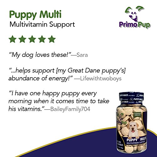 -. Binding : Misc. -. Brand : P.R.Imo Pup -. EAN : 0683203927475 -. Feature : SUPPORT FOR THE PUPPY STAGE: Essential vitamins & minerals to promote physical & mental wellbeing / TOP NOTCH NUTRITION: Multivitamins supplement the diet to ensure dogs are functioning at their best / VETERINARIAN FORMULATED & RECOMMENDED: Ensures adE.q.u.a.t.e nutrition in an easy to digest formula / MADE IN USA: P.R.Imo Pup® products use high quality ingredients, are grain free & are NASC Certified / CUSTOMERS SAY: I have one happy puppy every morning when it comes time to take his vitamins! -. Label : P.R.Imo Pup -. Manufacturer : P.R.Imo Pup -. NumberOfItems : 60 -. PackageQuantity : 1 -. ProductGroup : Pet Products -. ProductTypeName : PET_SUPPLIES -. Publisher : P.R.Imo Pup -. Studio : P.R.Imo Pup -. Title : P.R.Imo Pup® Puppy Multi | Vitamin Supplement for Puppies | Supports Physical & Mental Wellbeing | Easy to Digest | No Artificial Colors, Flavors, or Grains | Veterinarian Developed | 60 Chewables -. UPC : 683203927475