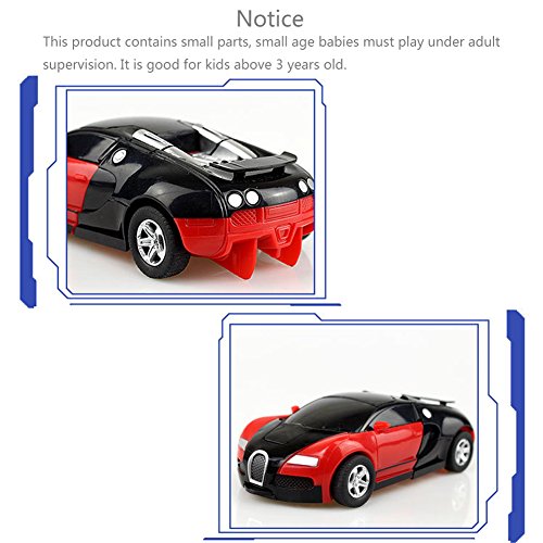 -. Feature : ❤ What's in the Box - 1 Transformers Toy Car. Dimension: 4.9" of the length. / ❤ Always Use the Material of the best Quality - Made of ABS Plastic material, safe for kids. / ❤ 2 in 1 Autobot - One step to change, the car will transform to robot after crashing. / ❤ Notice - This product contains small parts, small age babies must play under adult supervision. It is good for kids above 3 years old. / ❤ After-sales Service - Quality problems occur within one year replacement, lifetime warranty, if you're not completely satisfied, then CONTACT US and we will give you a 100% refund within 90 days of purchase. It is our intention to offer the BEST customer service on Amazon.