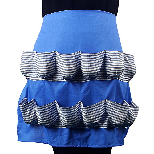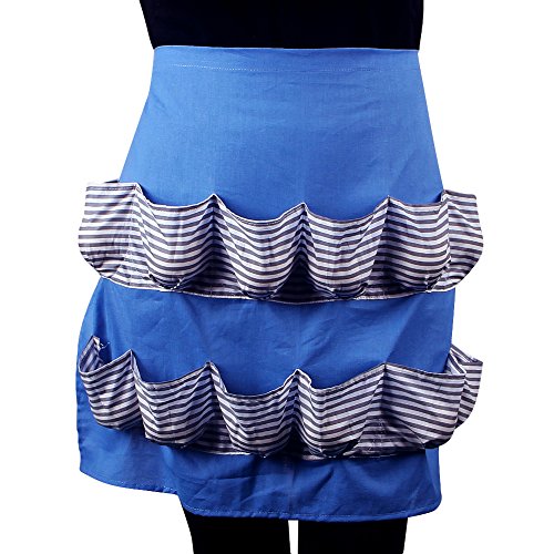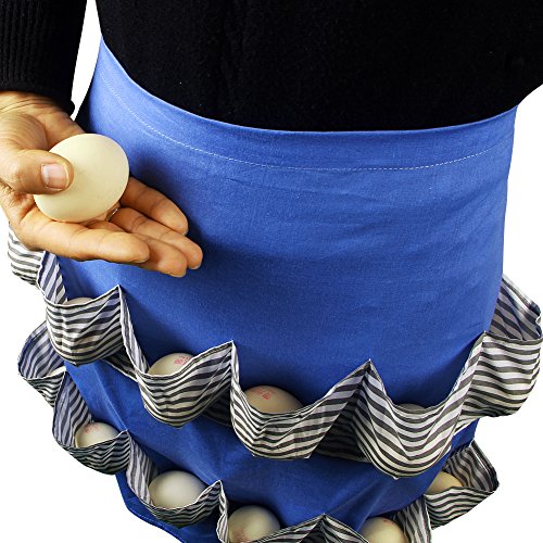 Hense Apron with 12 Pockets Can Holding Eggs, Perfect for Farmer House-hold Clever Housewife Must Have Apron(HSW-025-003 blue base with white/navy strip)