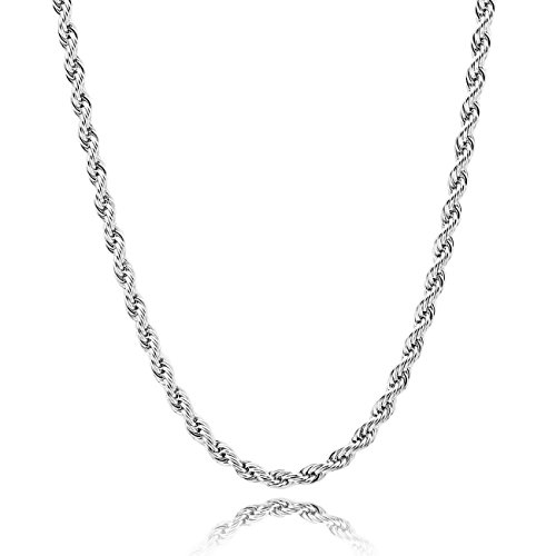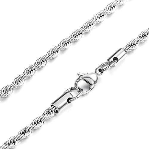 - Title : Silver 4.0mm Wide Stainless Steel Necklace Rope Twist Chain Link 24 Inch