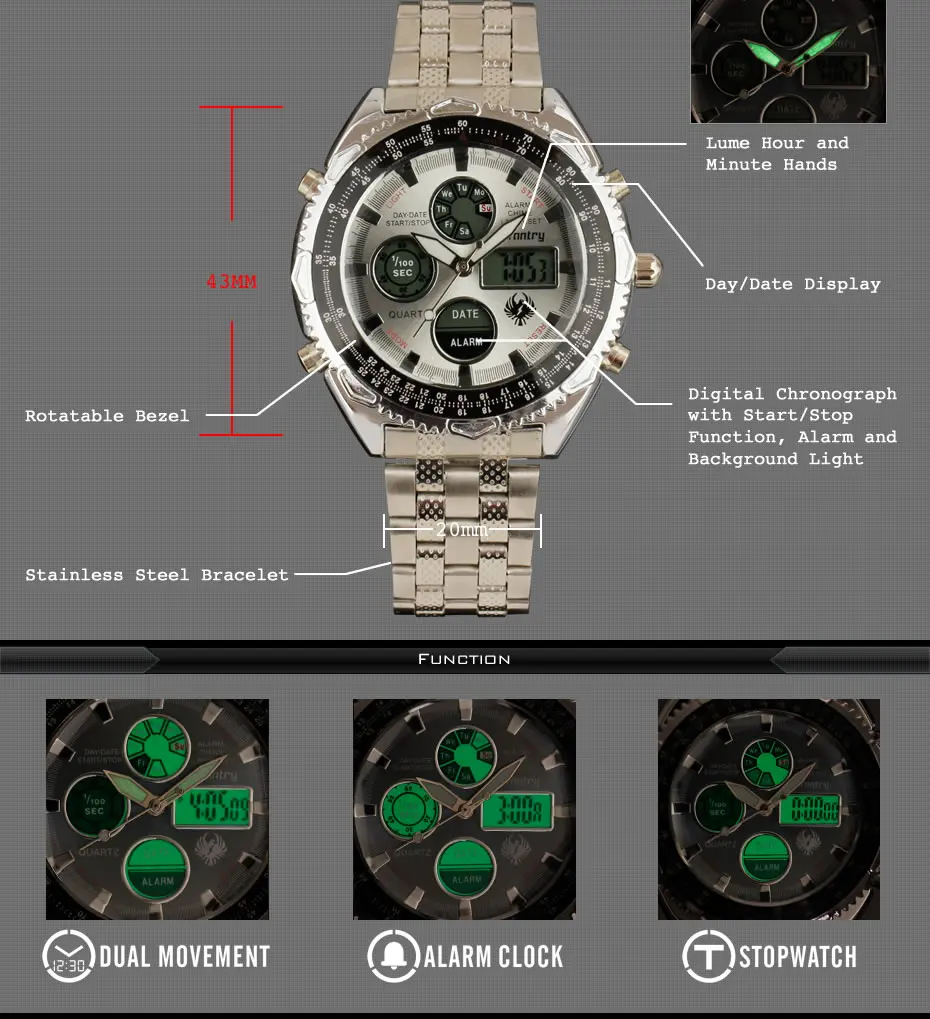Movement:Dual Display,Quartz