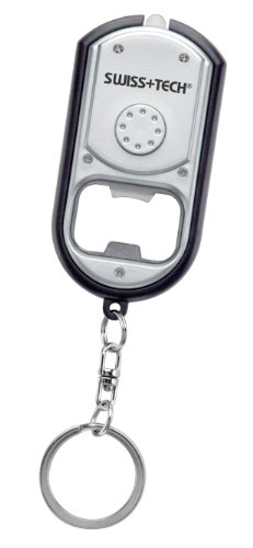 -. Title : Swiss+Tech ST33340 Silver/Black Trim Multitool LED Flashlight with Keychain, Bottle Opener