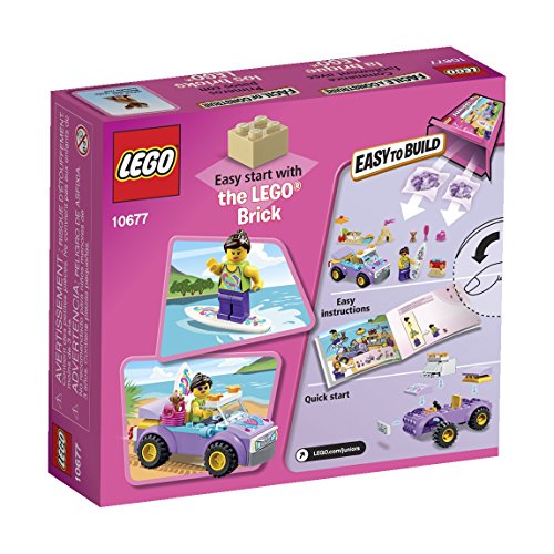 -. Feature : Features an Easy to Build convertible car, surfboard, sun lounger and a sand castle / Accessories include an ice cream, parasol, crab, stereo and a beach bag / Easy instructions encourage building independence / A L.E.G.O building and play experience designed for young builders / Car measures over 1" (4cm) high, 3" (9cm) long and 1" (4cm) wide