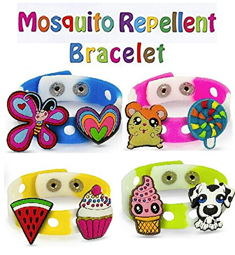 Mosquito Repellent Bracelet For Kids With 8 Fun Charms by La Relief (pack of 4). 100% natural bug and Insect Repellent, deet free and highly effective for outdoor and indoor activities