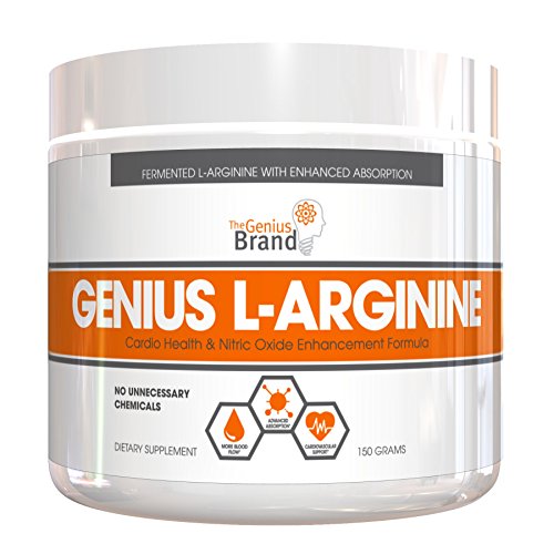 -. Title : Genius L Arginine Powder - Fermented L-Arginine Supplement, Premium Nitric Oxide Booster, Muscle Builder and Cardiovascular Health, Unflavored, 30 Serving/150 Gram
