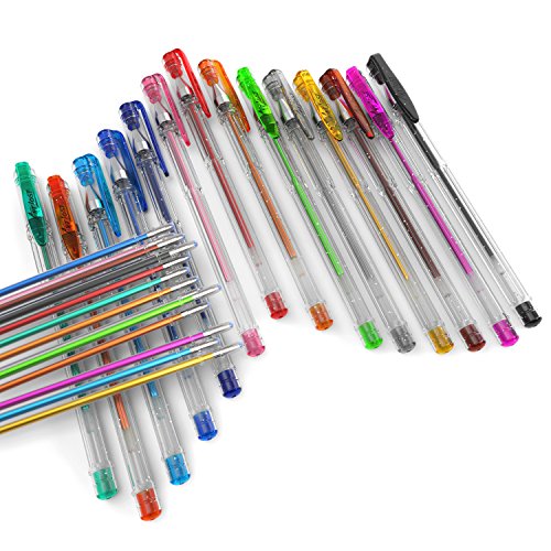 -. Feature : Gel pen set comes in 14 assorted glitter colors with 14 ink refills for value and environmental friendliness / Features a triangular shaped grip for comfort and control / Medium ballpoint, 8.0 mm, allows for accuracy and precision in writing and doodling / Ideal for work, school, and everyday use. Pens are Acid-free & Non-toxic / ArtLost coloring system starts quickly without dragging, requires very litle pressure from the hand and delivers crisp and colorful lines