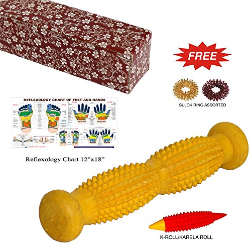 - Feature : **IMPORTANT NOTE** - The images and page information for this product have been created by 'Super India Store'. You will get exactly what you see only if you order from Super India Store. / **FREE Gift Box Packaging worth $1.99 as shown in image with secured "Bubble Wrap" for Product inside. / **PLEASE CONFIRM** Original Seller "Sold by Super India Store' and Fulfilled by Amazon" before you add it to the cart. Genuine Super India Store. product - beware of imitations! / FREE Acupressure K-Roll for Hand $ 4.99, FREE Acupressure Su-Jok Ring for Finger $ 3.99, FREE Acupressure Reflexology Chart for Hand & Feet $ 2.99 (TOTAL FREE 3 Nos. ACUPRESSURE HEALTHCARE PRODUCTS COST WORTH $ 12 Approx.) / Single Roller to Relax and Massage your feet. Wide Roller so that both the feets can be rolled. The concept and design is eased to relax your whole body. The Sturdy construction is entirely handmade. Promotes blood circulation and relaxes body. Secured Bubble Wrap for Product inside with Gift Box Packaging worth $2.49