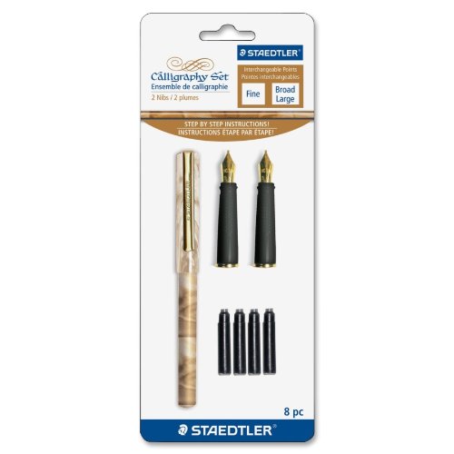 -. Feature : Fine, Broad Pen Point Type - Black Water Based Ink - Marble Assorted Barrel - 2 / Set / Staedtler Calligraphy Set