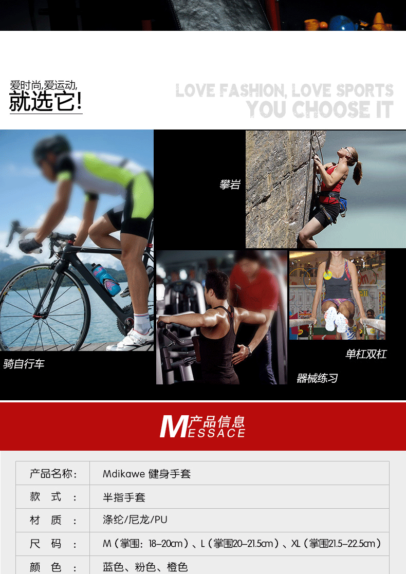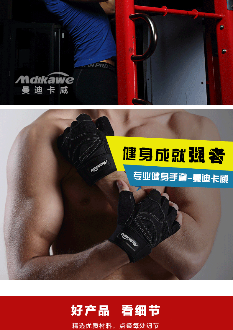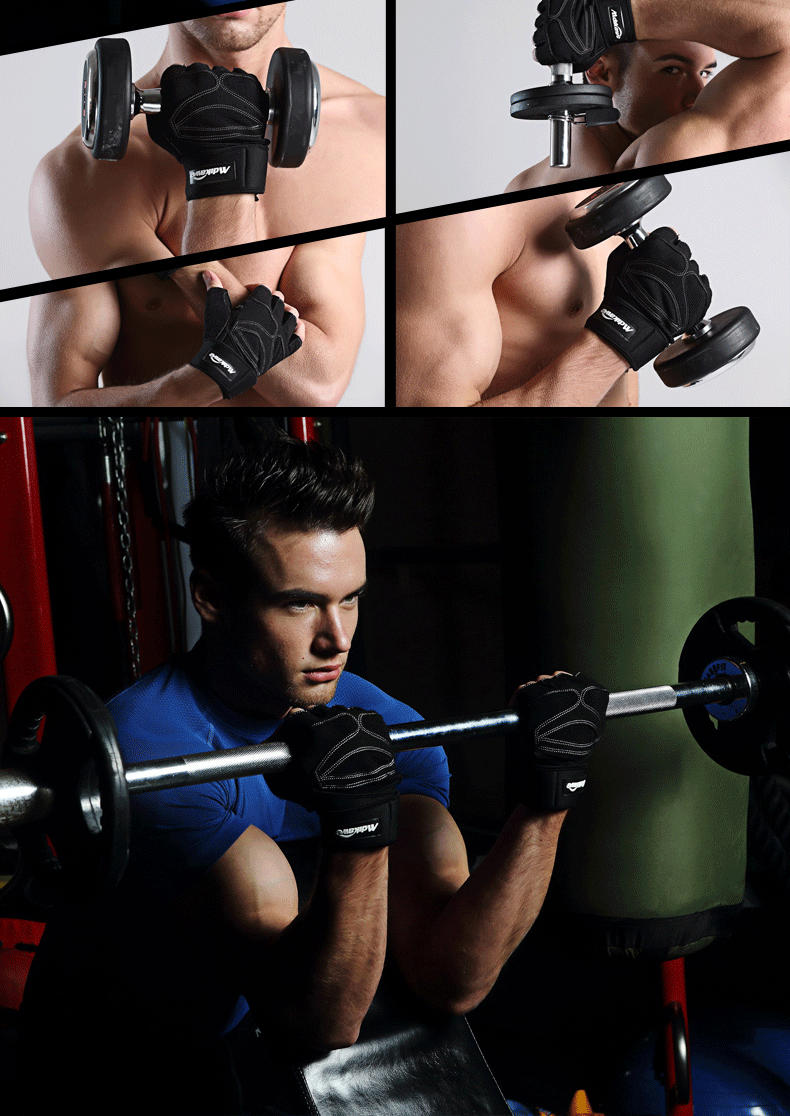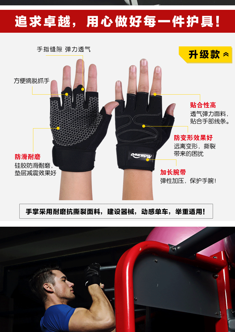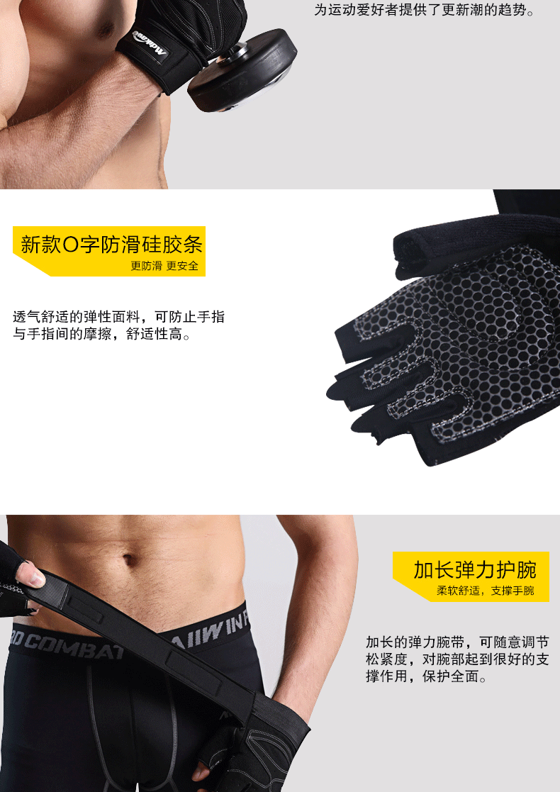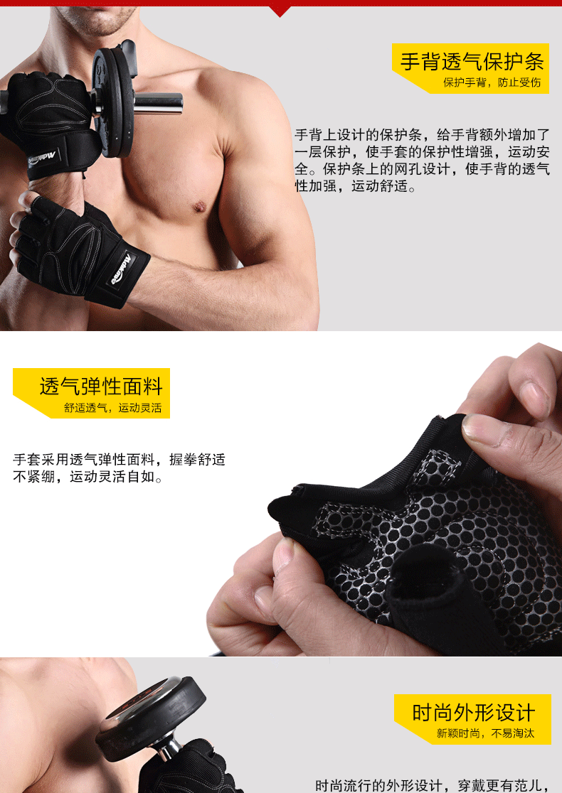 透气运动自行车健身手套健身房哑铃器械训练半指护腕防滑护掌男女