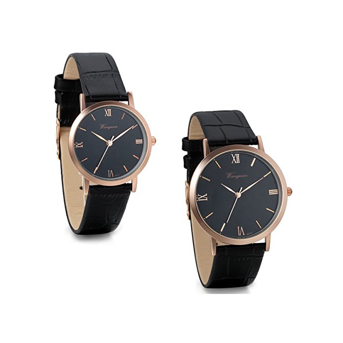 JewelryWe 맨즈 손목시계 패션 캐주얼 비지니스 레더 밴드 아날로그 스포츠 쿼츠 합금 발렌타인 선물 블랙