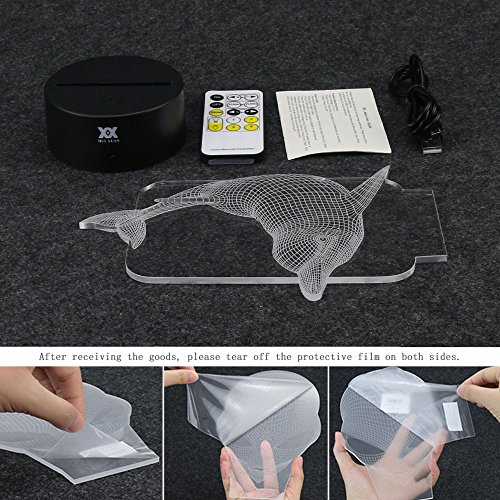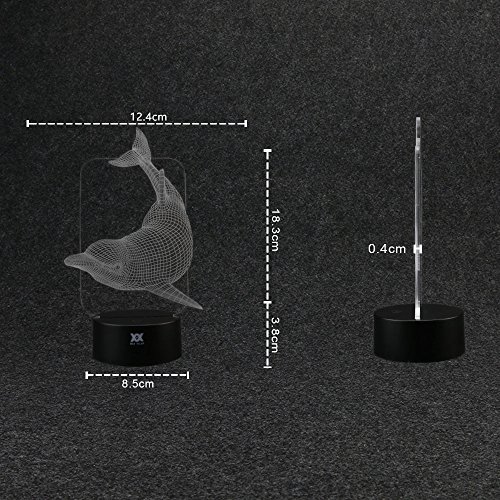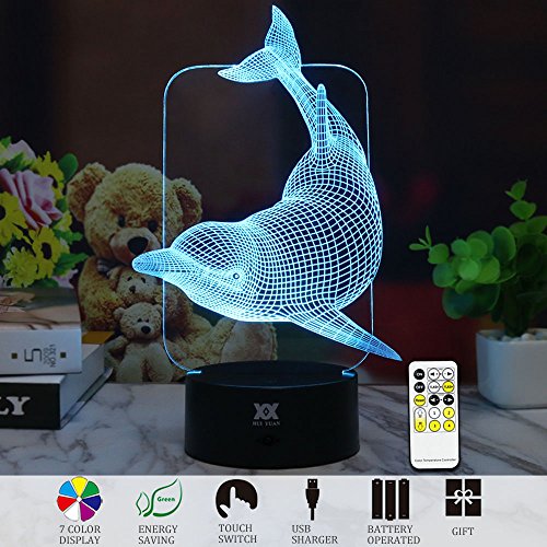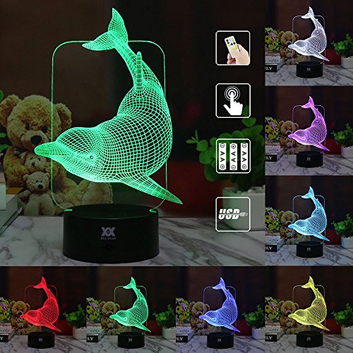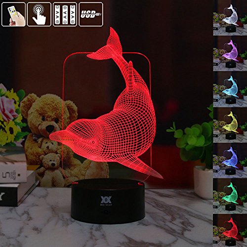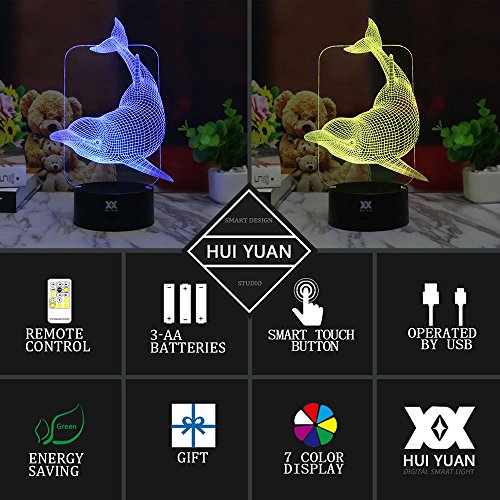 3D Illusion Animal Dolphin Remote Control LED Desk Table Night Light Lamp 7 Color Touch Lamp Kiddie Kids Children Family Holiday Gift Home Office Childrenroom Theme Decoration by HUI YUAN