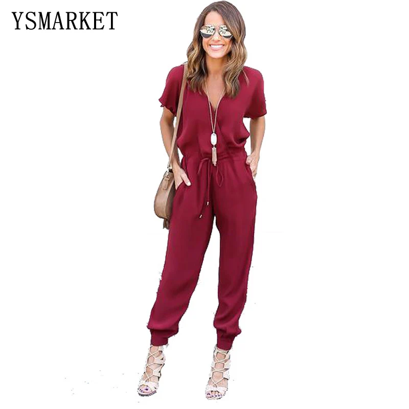 Model Number:Sexy V Neck Pleated Waist Pocket Jumpsuit EDCJ-16613