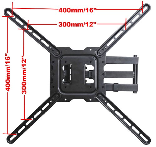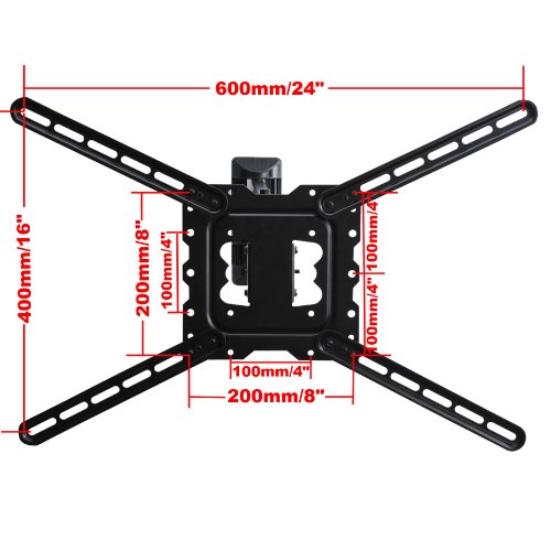 -. Feature : Heavy-duty steel construction, loading capacity up to 66 lbs; Single stud mounting / Swivel +/-90 degrees, tilt +/-15 degrees, extends 24" from the wall / Fits VESA (mounting hole patterns) 100x100/200x100/200x200mm without extender, and also fits VESA 600x400/400x400/600x300/400x200/300x300mm with 4 plate extender / VESA plate can be taken off, quick release design for easy installation; Post-installation level adjustment allows the TV to perfectly level / Refurbished Item in working condition, with minor scratches