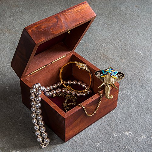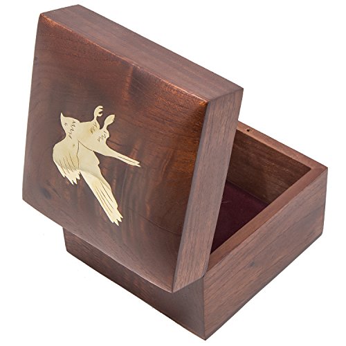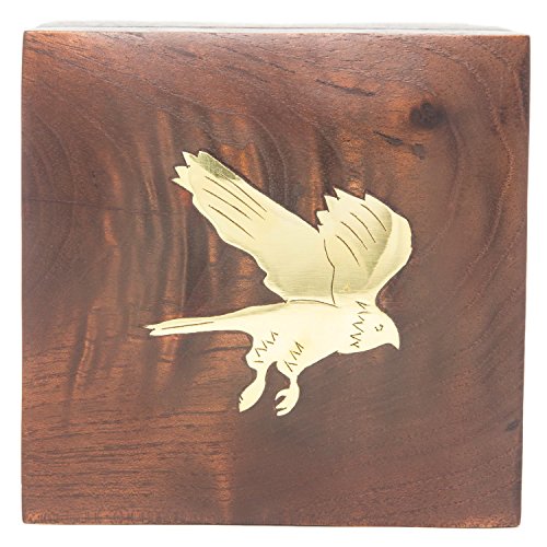 Handmade Small Wooden Jewelry Box Carved By Traditional Artisans Of India- Wood Box Storage-Square Wood Box For Trinkets-Eagle Charm,4.5 Inch