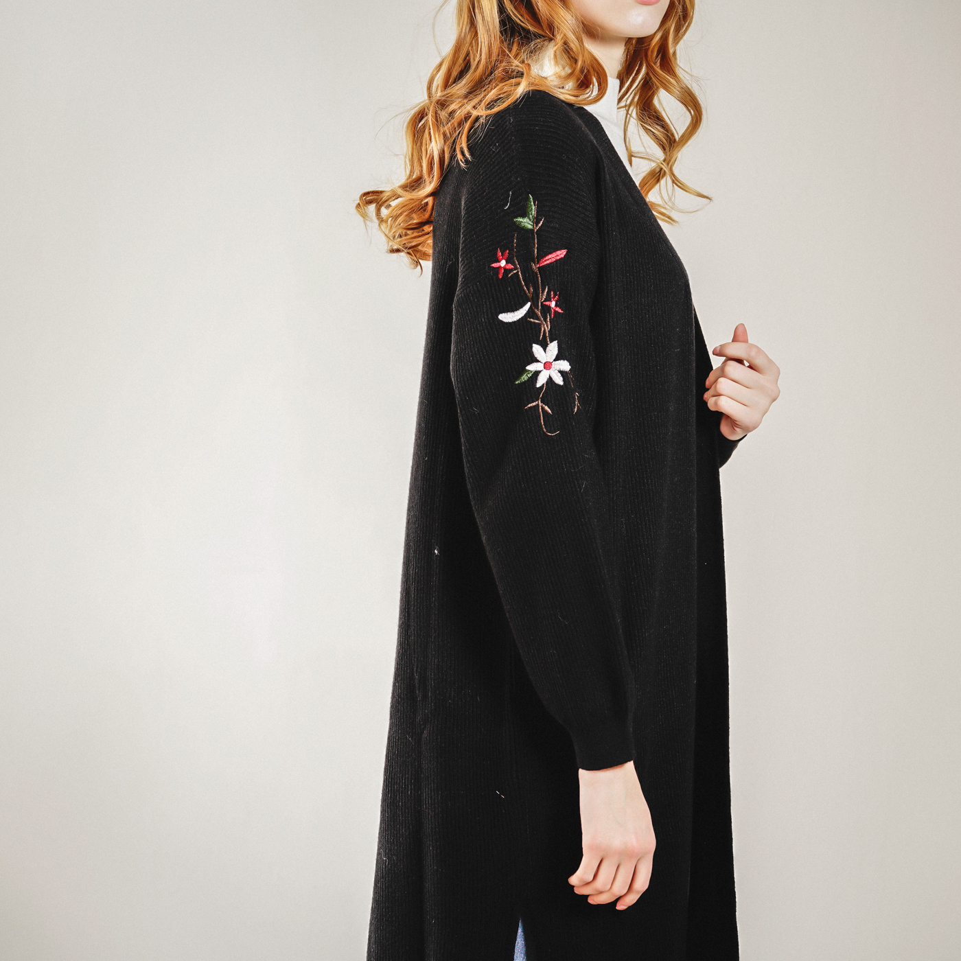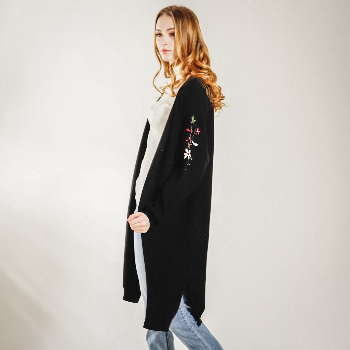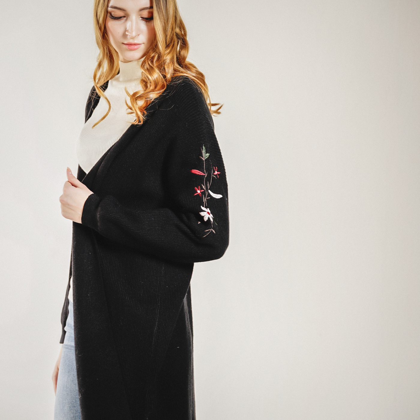 소매의 자수가 예쁜 톡톡한 소재의 가디건입니다.