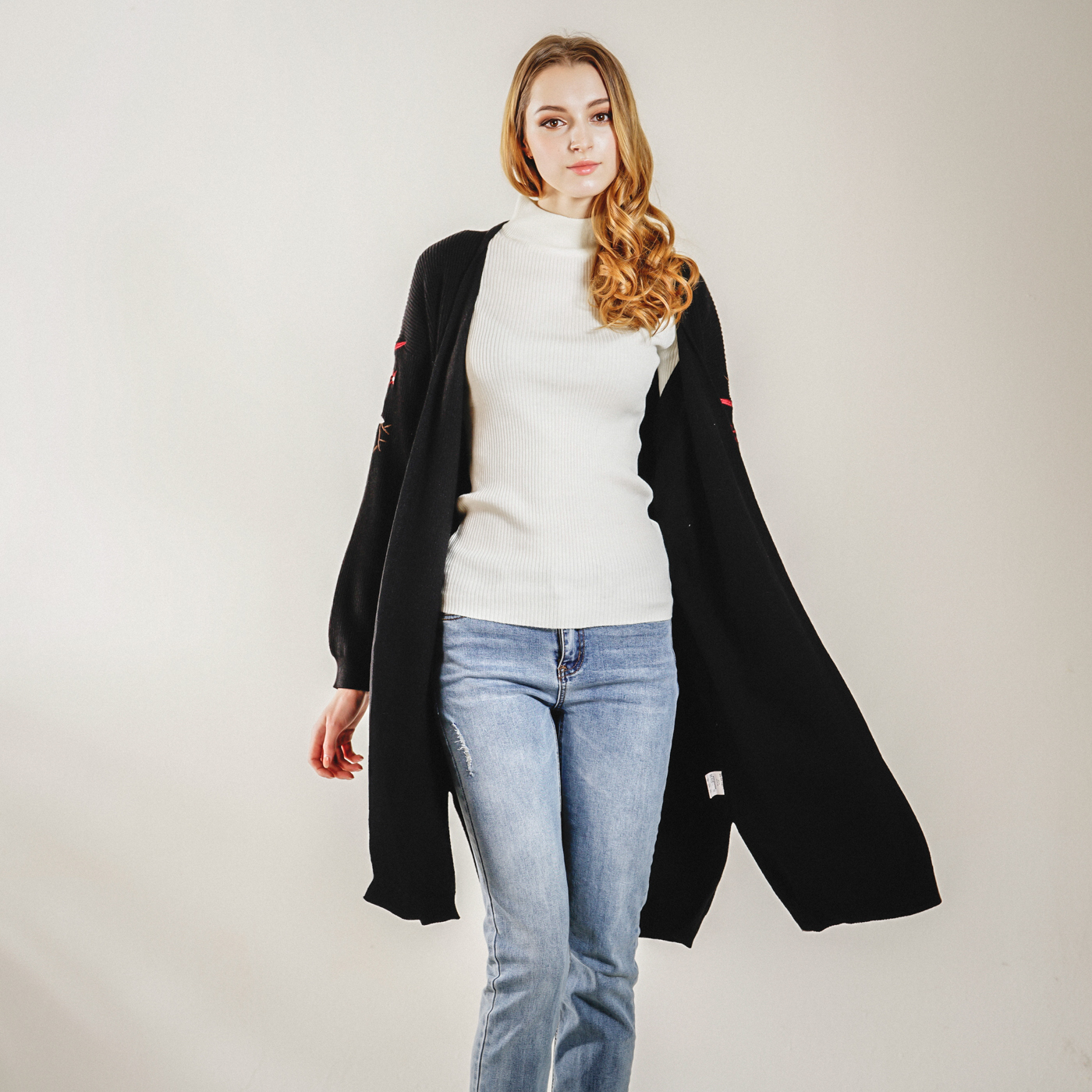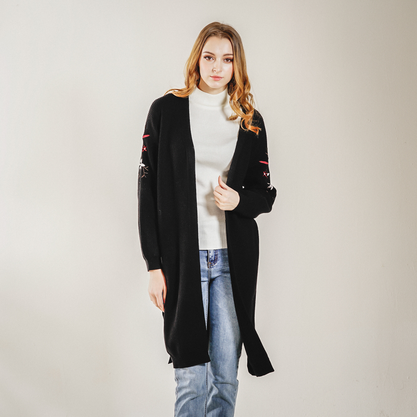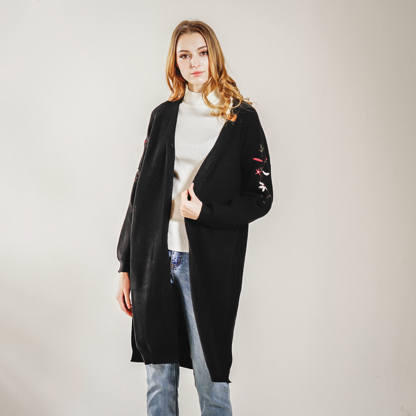 소매의 자수가 예쁜 톡톡한 소재의 가디건입니다.