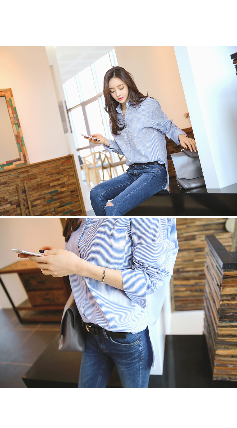 루즈한 핏으로 제작되어 사이즈에 구애 없이 예쁘게 착용하기 좋으며 앞 기장이 더 짧은 언발란스한 기장으로 세련된 무드를 더했답니다.