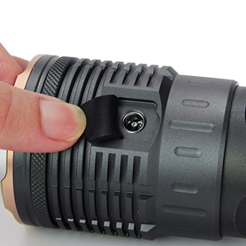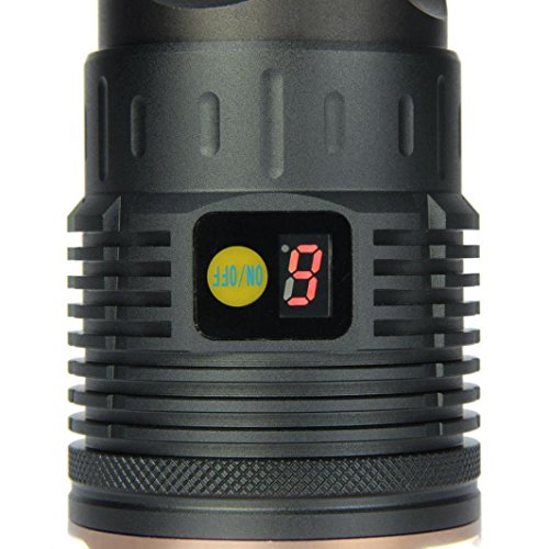 Studio : Iuhan Publisher : Iuhan Product Description Description: It is waterproof, but do not put it into water long. Crenellated strike bezel for enhanced self-defense. Features: Type: CREE XML-T6 LED LED Quantity: 15 Luminous Flux: Max output 50000lumens Switch Location: Middle Waterproof: Yes 3 Modes: High / middle / strobe(long press the button) Material: Aluminum alloy case 6061, coated glass lens Power Source: 4 x 18650 3.7V Rechargeable Battery(Not included) Lifespan: 100,000 hours Light Color: White Press and hold the button for 1.5 seconds to turn on/off the light. Press 1 time: High brightness (100%), digital display shows: H Press 2 times: Mid brightness (50%), digital display shows: E Press 3 times: Low brightness (15%), digital display shows: L Digital Display Battery Power Indicator: Digital display shows "9": 90%-100% "8" for 80%-90% Digital display shows "7": 70%-80% "6" for 60%-70% Digital display shows "5": 50%-60% "4" for 40%-50% Digital display shows "3": 30%-40% "2" for 20%-30% Digital display shows "1": 10%-20% "0" for 0-10% Operating Voltage: DC 3.7V~4.2V Power Source: 4 x 3.7V 18650 rechargeable li-ion batteries (Not Included) Product Size: 60 x 60 x 150mm NOTE: 1. Please tighten the tail cap, otherwise it might not work because of a loose battery contact 2. Please keep the tail cap and clean, If the control panel of tail cap is dirty, it may cause the battery to a bad co 0