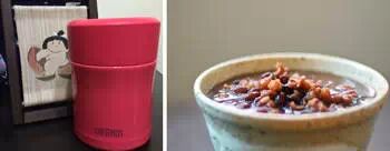 2、开水预热焖烧杯,把泡好的的薏米和红豆放入焖烧杯中;