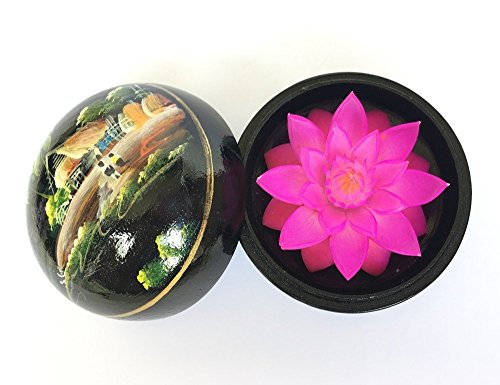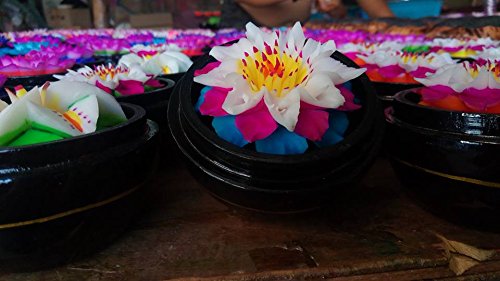 Thai Hand-Carved Soap Flower, 3 Inch Scented Soap Carving Gift-Set, Lotus In Decorative Wood Case, Thailand, By WADSUWAN SHOP. (F001)