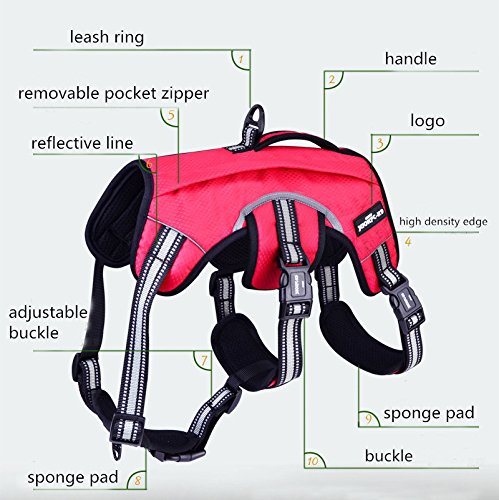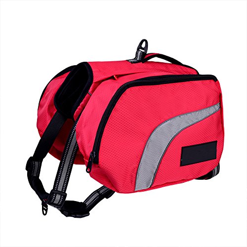 -. Feature : 100% Brand new and high quality soft nylon,durable,breathable sandwich and oxford mesh materials keep coo / There are four zippered bags on both sides,convenient pockets for carrying food, water, and gear for you and your pet by themselves / Reflective line can reflect the rim to ensure good visibility, especially at low-light visibility environments / Perfect for hiking, training, outdoor activity and service dog use / The pockets are detachable