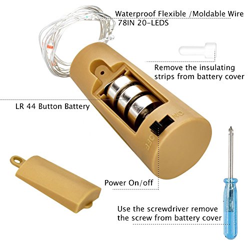 - ☀BATTERY POWERED : Every Wine Bottle Cork Lights are Powered by 3 PCS LR44 Batteries (Batteries already Installed) and Screwdriver Included, no Need to Power Socket and Convenient to Use.