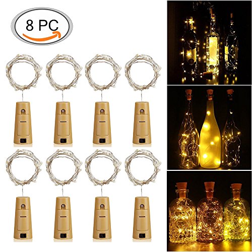 Bottle lights, LED cork lights ,KUXIEN 8 Pack Warm White Wine Bottle Cork Lights ,Copper Wire LED String Lights Battery Powered, For Party, Decor, Wedding Parties,Mood Lights and and Valentine's Day