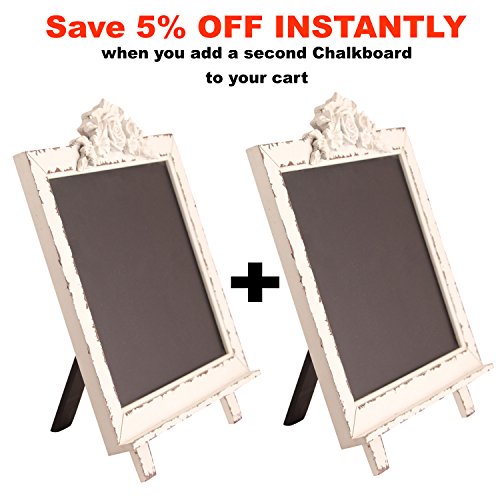 Distressed Wood Framed Free Standing Chalkboard (L:13.5 in. x W:16 in.)- Blackboard Sign - Wedding Chalkboard (Distressed White)