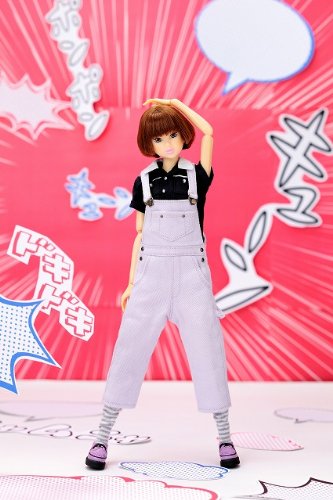 Transformed into a naughty rock KIDS ☆ It is a healthy momoko that mixes a dry bowling shirt and makeup to the lumpy overalls of sweet sherbet color.