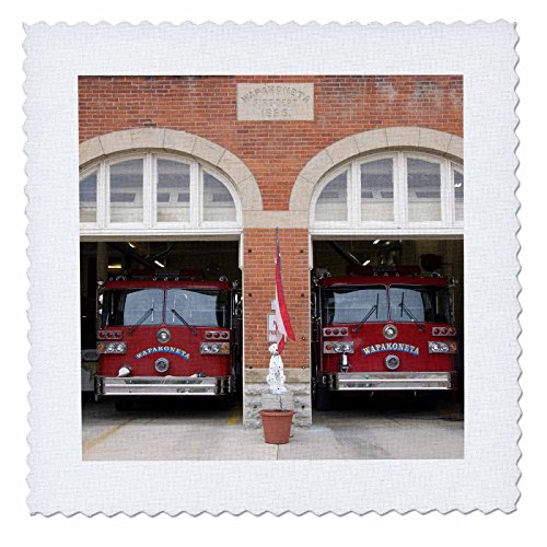 3dRose qs_93377_1 Fire Station with Trucks at Wapakeneta, Ohio-US36 DFR0056-David R. Frazier-Quilt Square, 10 by 10-Inch