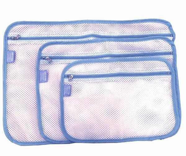 シャツやパジャマ・下着やTシャツ・ソックスやハンドタオルなど、小分けして収納するのに便利なメッシュケース3枚セットです。
