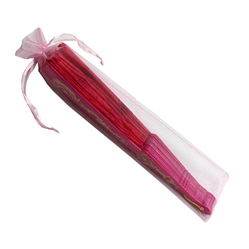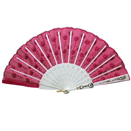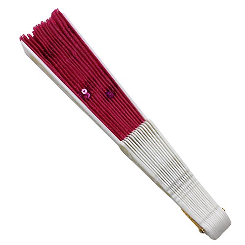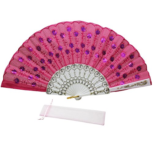 Newstarfactory Peacock Feather Hot Pink Sequins Design White Plastic Folding Hand Fan with Exclusive Gift