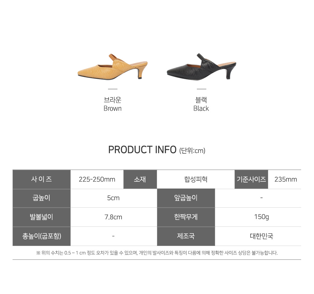 미들한 5cm의 굽높이로 다리라인을 예쁘게 보여주고