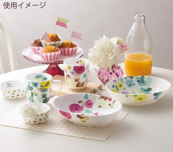 | ふんわりとしたタッチで描かれた水彩花柄のテーブルウェアセットです。 |