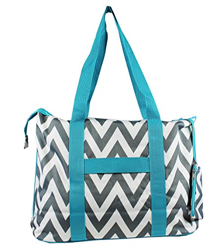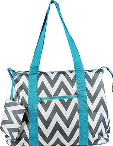 - Title : Grey Chevron Prints w/Blue Trim - Large Roomy Canvas Tote Beach Bag W/Attached Coin Purse