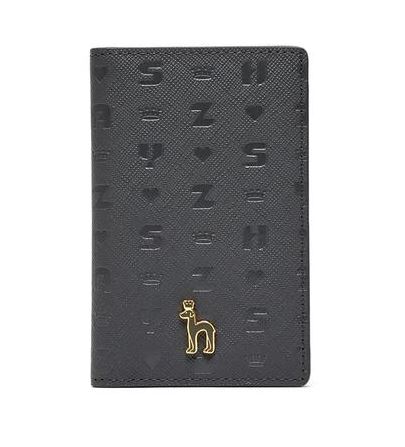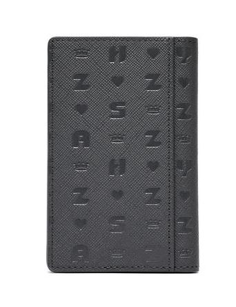 로고 레터링 음각 패턴으로 세련된 외관을 보여주는 카드 지갑입니다.