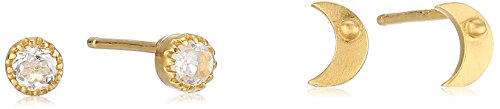 Satya Jewelry Celestial Goddess White Topaz Gold Moon Stud Earrings