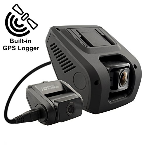 Rexing V1LG Dual Channel Car Dash Cam FHD 1080p 170° Wide Angle Dashboard Camera Recorder with HD Rear Camera, Built-in GPS Logger, 16GB Memory Card, G-Sensor, WDR, Loop Recording