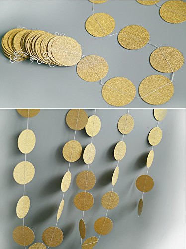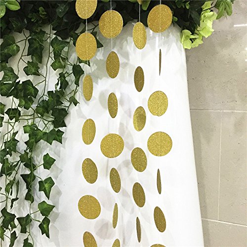 -. Title : Fecedy Hanging Circle Dots Paper Glitter Champagne Gold Garland Bunting for Party 1pcs 13feet