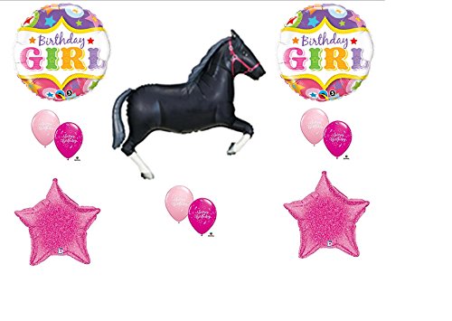 -. Title : 11pc BIRTHDAY GIRL new BALLOON set BLACK HORSE stars PINK gift DECORATION favors PARTY cow girl
