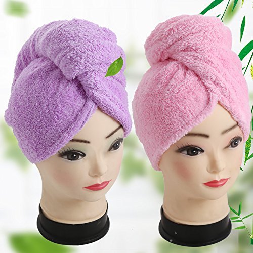 Cooptop Women's Bamboo Hair Turban Towel Twist Wrap Fast Drying Absorbent Bamboo Fiber Dry Hair Cap for Mother Sister Daughter, 2 Pack (Light...