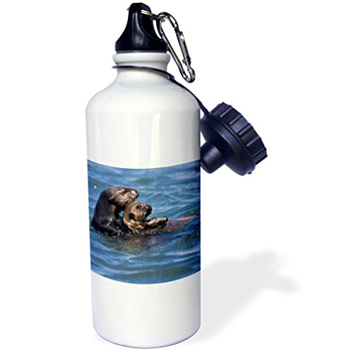 3dRose wb_88467_1 California Sea Otter, Moss Landing, California-US05 JGS0199-Jim Goldstein Sports Water Bottle, 21 oz, White
