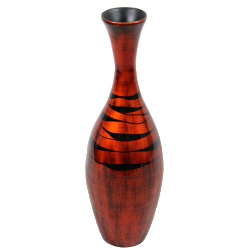 Essential Décor Entrada Collection Lacquer Bamboo Vase with Ribbon Accent, 24.4 by 7.87-Inch, Orange