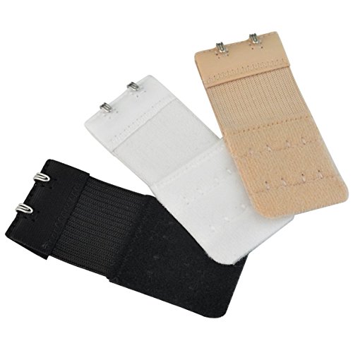 - PACKAGE DETAILS: Package comes with pack of 6pcs bra extenders, 2 in black, 2 in white and 2 in nude, which can match your bras with these 3 colors. The length of the item is 3.1 inches, and the width is 1.3 inches. The length between two hooks is 0.5 inch. With these bra extenders, you don't worry your bra belt is not long enough.