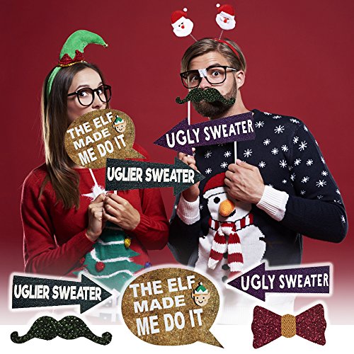 - PERFECT FOR YOUR HOLIDAY THEMED EVENT: Photo booths make a fun addition to any event. Whether it's a Christmas party, office party, family reunion or celebration of the winter solstice, these props will be a hit! Your guests will love to pose for a selfie, or group shots with them to create memorable photographs to save, or share on social media. You can even make a game or contest out of it. Awarding prizes for best, funniest or most creative photos.