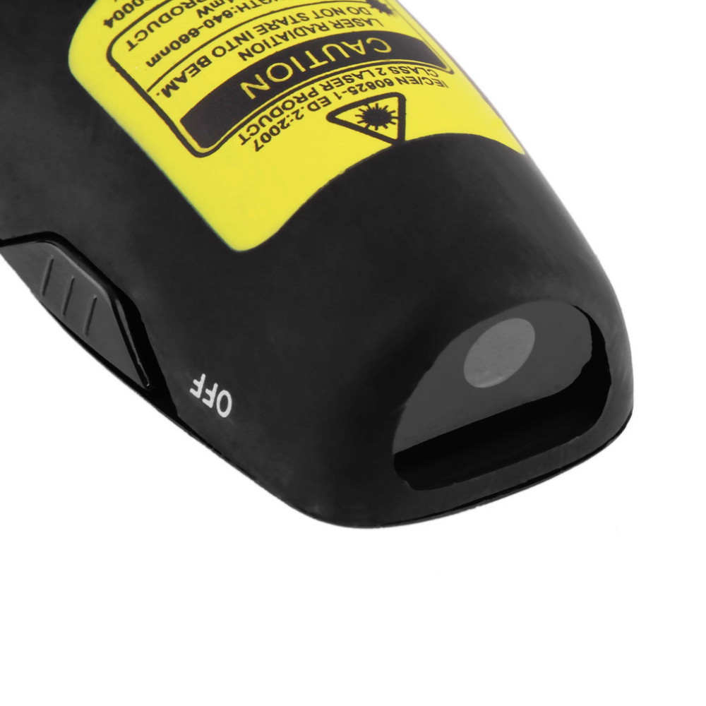 Red laser pointer with LED indicator, is easy to see against most backgrounds and projection surfaces.