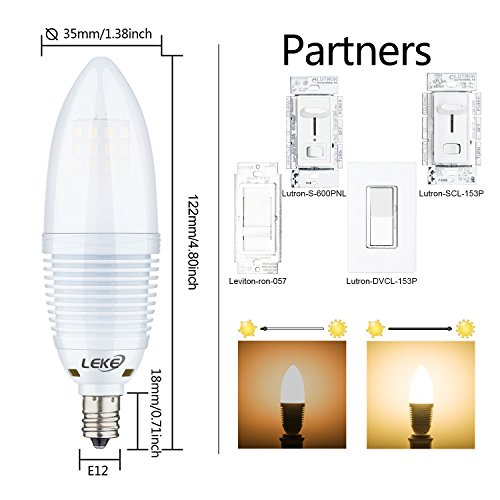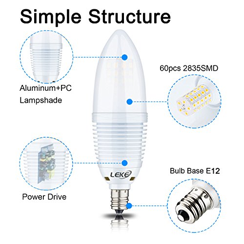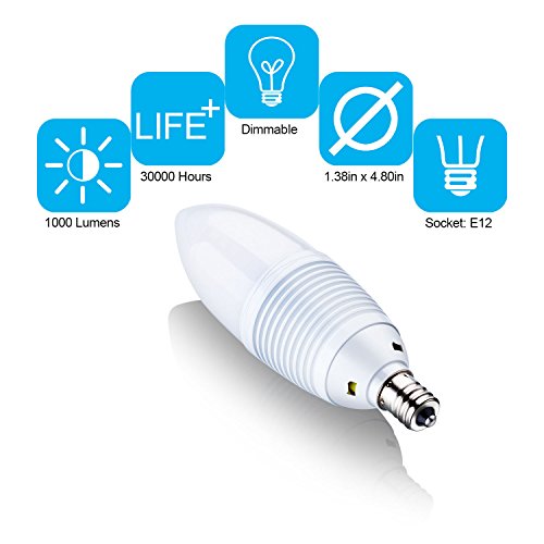 - ☞ Excellent Performance→Dimmable LED Candelabra Bulb,E12 Candelabra Base, Torpedo Shape Bullet Top, Warm White 3000K,1000 Lumens, 60pcs 2835SMD Inside, Light Pattern Same as Incandescent Bulbs