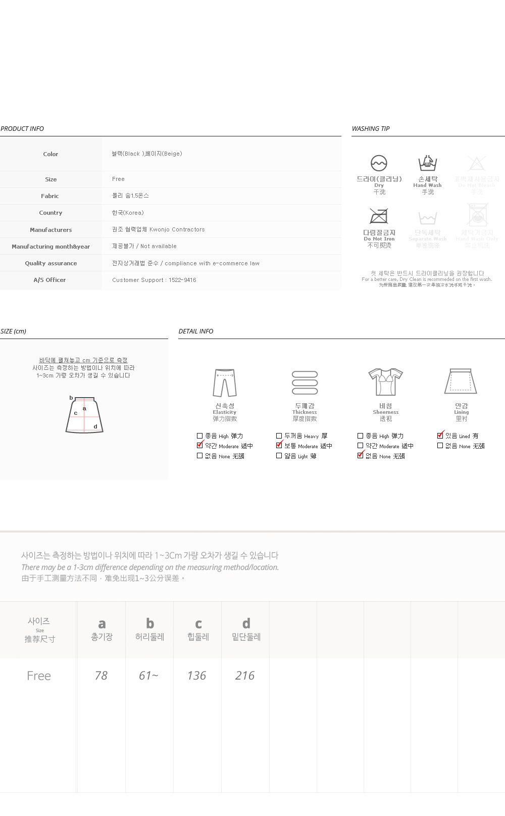 피팅 컬러와 사이즈는 블랙, Free 입니다